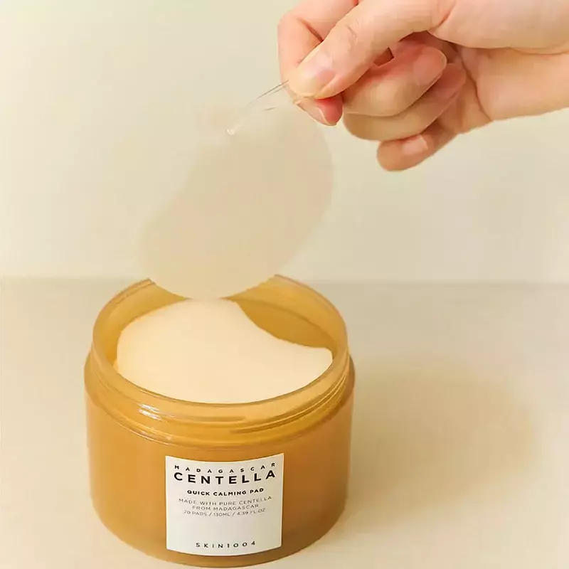 Los Quick Calming Pad de SKIN1004 son discos de algodón pre-empapados en esencia calmante, formulados con Centella Asiática de Madagascar para aliviar irritaciones, reducir enrojecimiento e hidratar la piel al instante. Su textura ligera y refrescante los hace ideales para pieles sensibles, reactivas o con tendencia a la irritación.